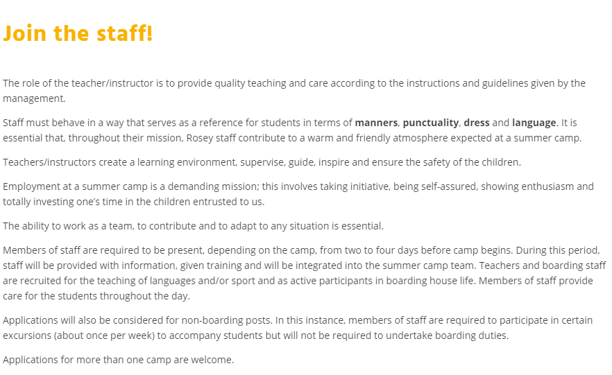 Summer camps Jobs online application